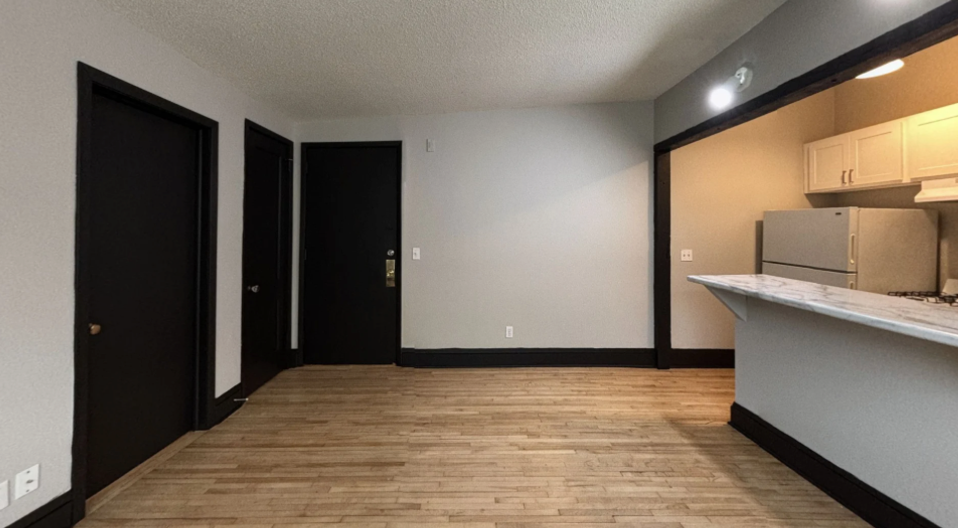 A1 floor plan offers a bright, open living area that creates a comfortable and flexible main space within 344 square feet, making it easy to personalize and truly make it your own. Large windows bring in great natural light throughout the living room area, which flows seamlessly into the full kitchen featuring a breakfast bar for both style and everyday use along with ample cabinet space. The separate bedroom is tucked away for added privacy and features excellent closet space, while the full bathroom is conveniently located just off the living room area - Giving this junior one-bedroom the feel of our standard one-bedroom at a lower price point.