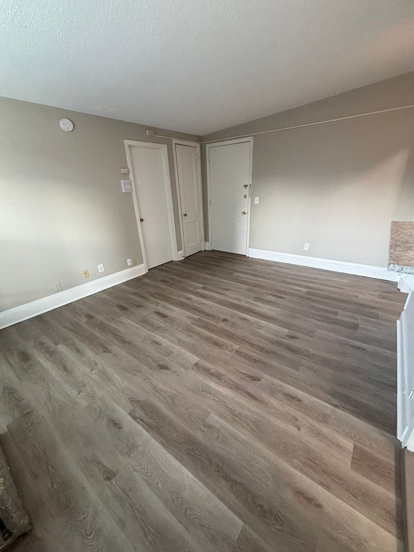 The 1 Bedroom Efficiency – 225–233 Oak Grove floor plan features a bright, open layout designed for comfort and flexibility, with a space that’s easy to personalize. Large windows bring in natural light throughout the living area, which flows seamlessly into a full kitchen with a breakfast bar and ample cabinet space. The separate bedroom is tucked away for added privacy and includes excellent closet space, while the full bathroom is conveniently located just off the living area.